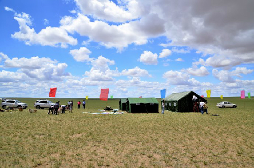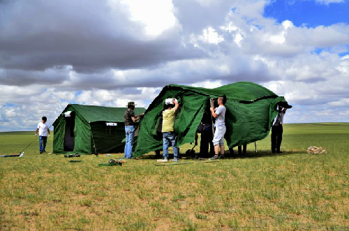 當(dāng)羊群午休時,我們的帳篷也搭好了,它們遠(yuǎn)遠(yuǎn)的望著這些奇怪的建筑。