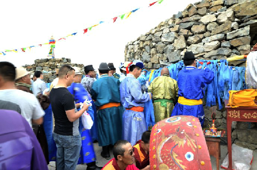 按照傳統(tǒng)習(xí)俗,獻祭時,女人是不能在敖包獻祭的現(xiàn)場的,只有當(dāng)獻祭儀式完成后,她們才能來到這里。