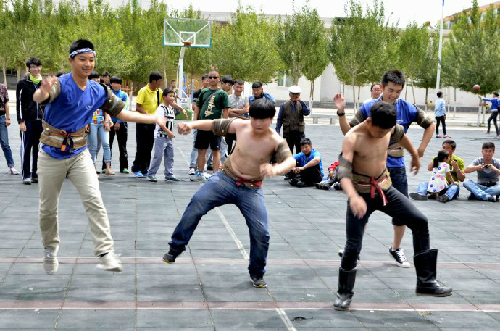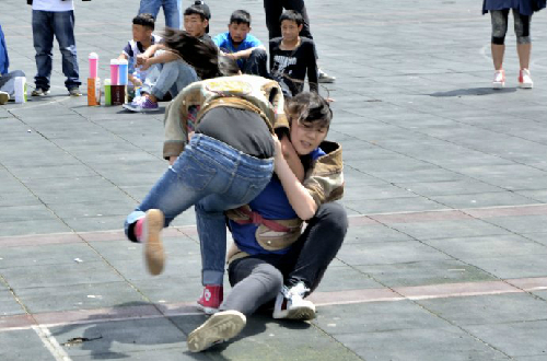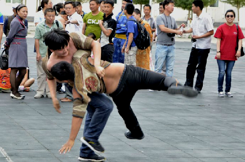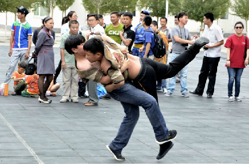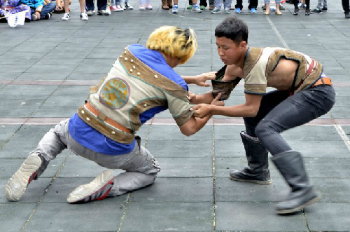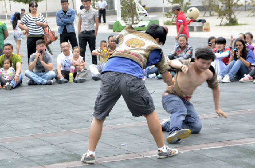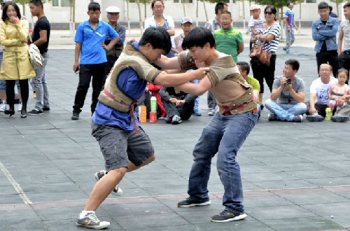 文的沒(méi)分出勝負(fù),比比武的,咱們摔跤吧!看這些有模有樣的小跤手。