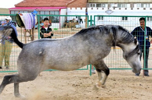在返程的路上,主辦方特地安排我們參觀了一個養(yǎng)馬場,據(jù)說那里有寶貴的“汗血馬”,遺憾的是這天“汗血馬”出去參加活動了,沒看到。