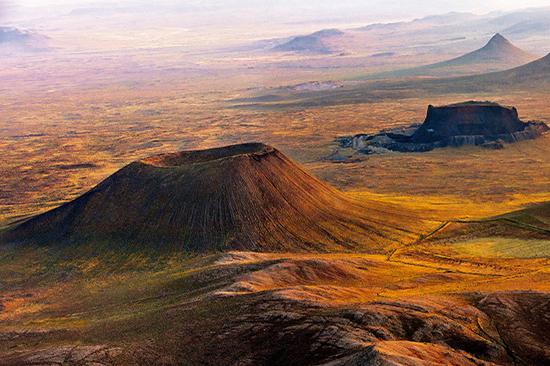 30多座不同類型、不同規(guī)模的火山,猶如串珠,鑲嵌在一碧千里的草原上。